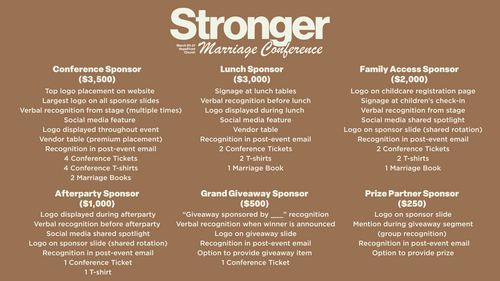 Whether you’re single, dating, engaged, or married, this conference is an investment in your current or future relationship. Strong marriages don’t happen by accident, they’re built with intention.